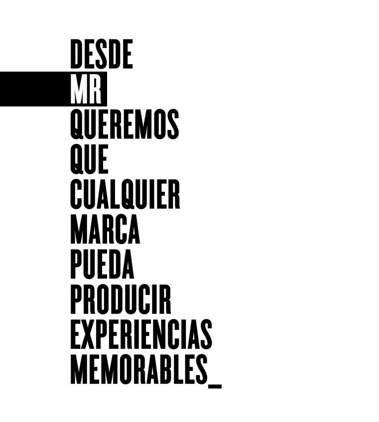 En MR la imaginación y la evidencia convergen para brindar las experiencias y productos del futuro, promovidos por un equipo humano de más de treinta personas con gran experiencia, al servicio de la sostenibilidad e innovación en la creatividad, realización y producción.